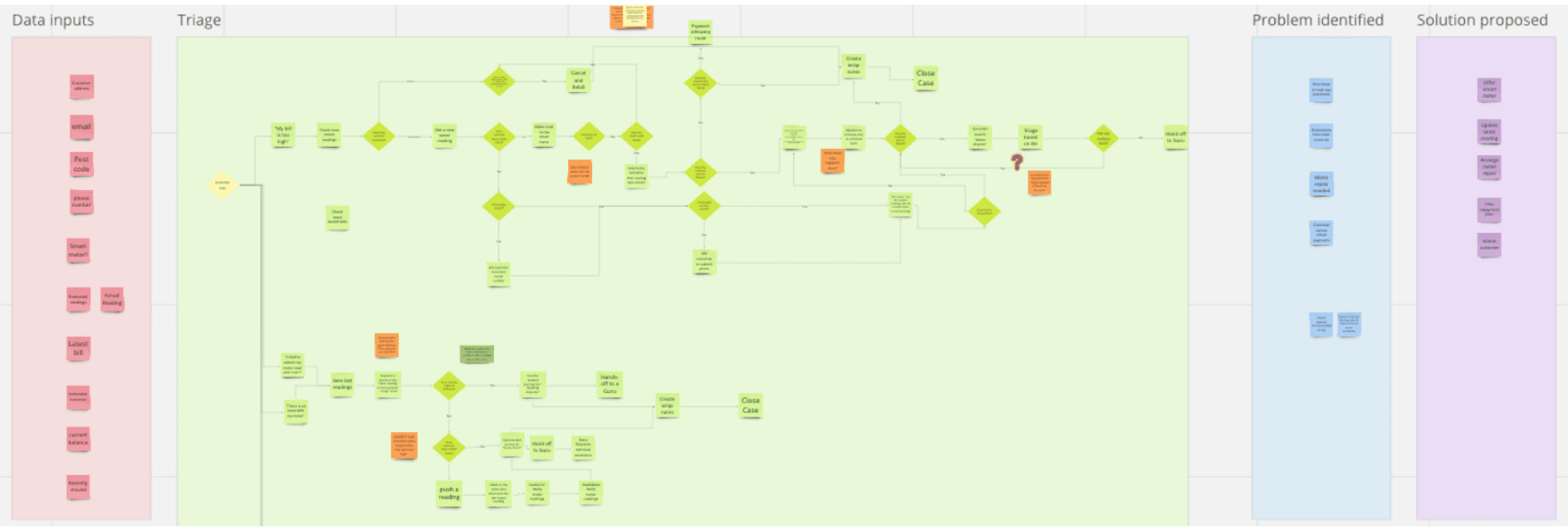 We intricately mapped out a ‘Next Best Actions flow’ for the billing issues and meter readings journeys using the following three forms of research as sources of knowledge:
