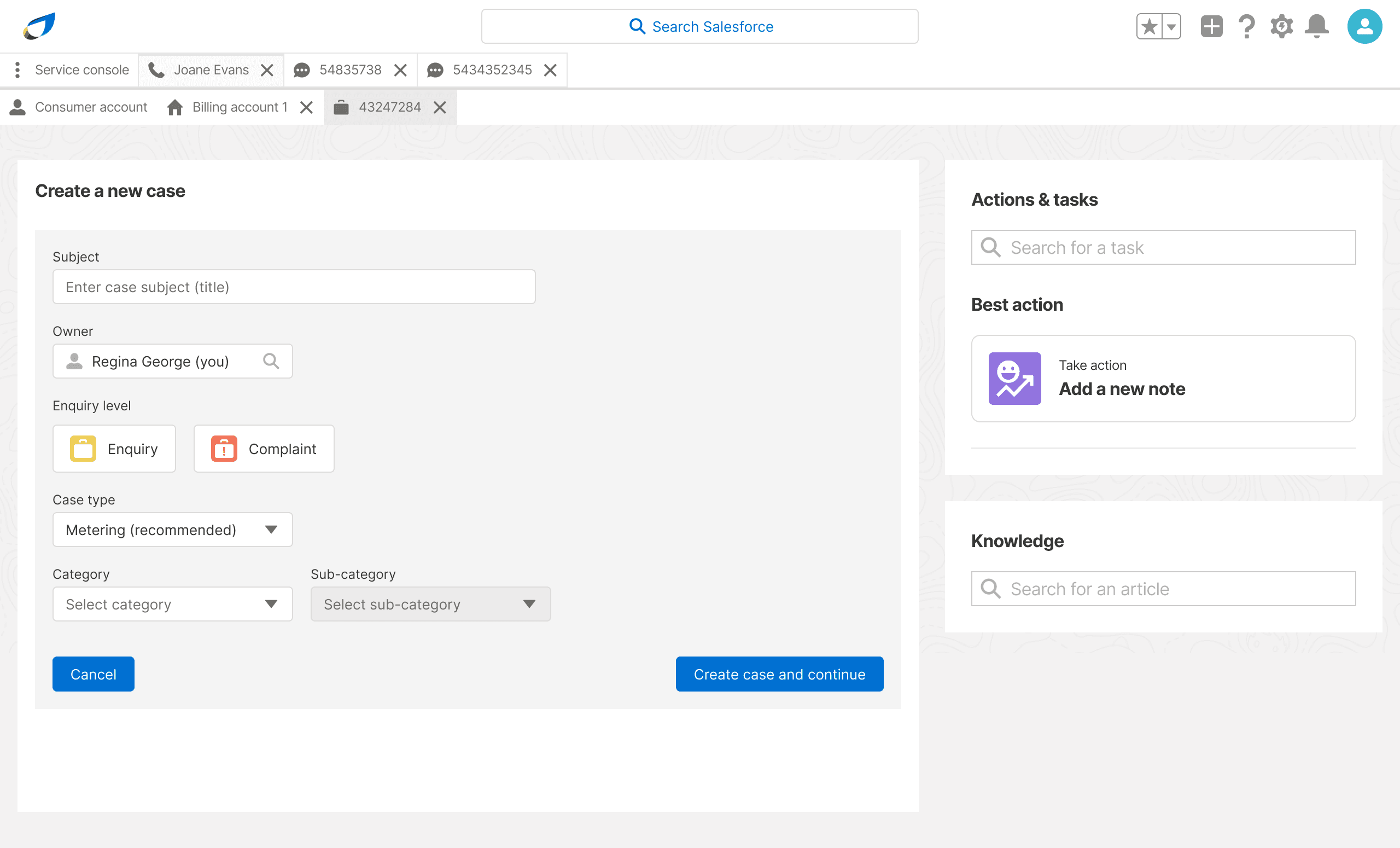 Design the optimal approach to diagnosing and handling metering issues in Salesforce, centred around an agent diagnosing an issue with a customer’s meter and requesting the customer submit a meter reading.