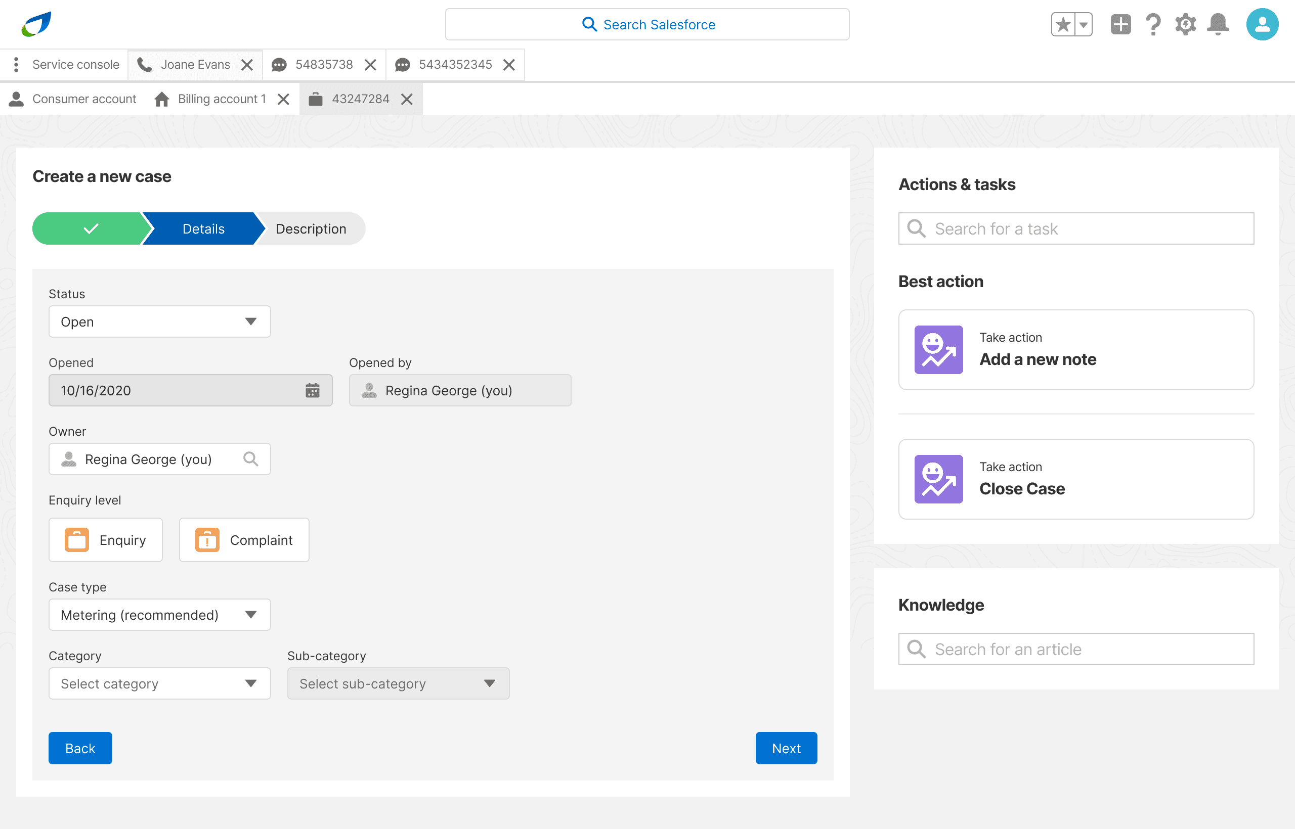 Design the optimal approach to handling billing issues in Salesforce, centred around the journey of a customer contacting about a bill increase.