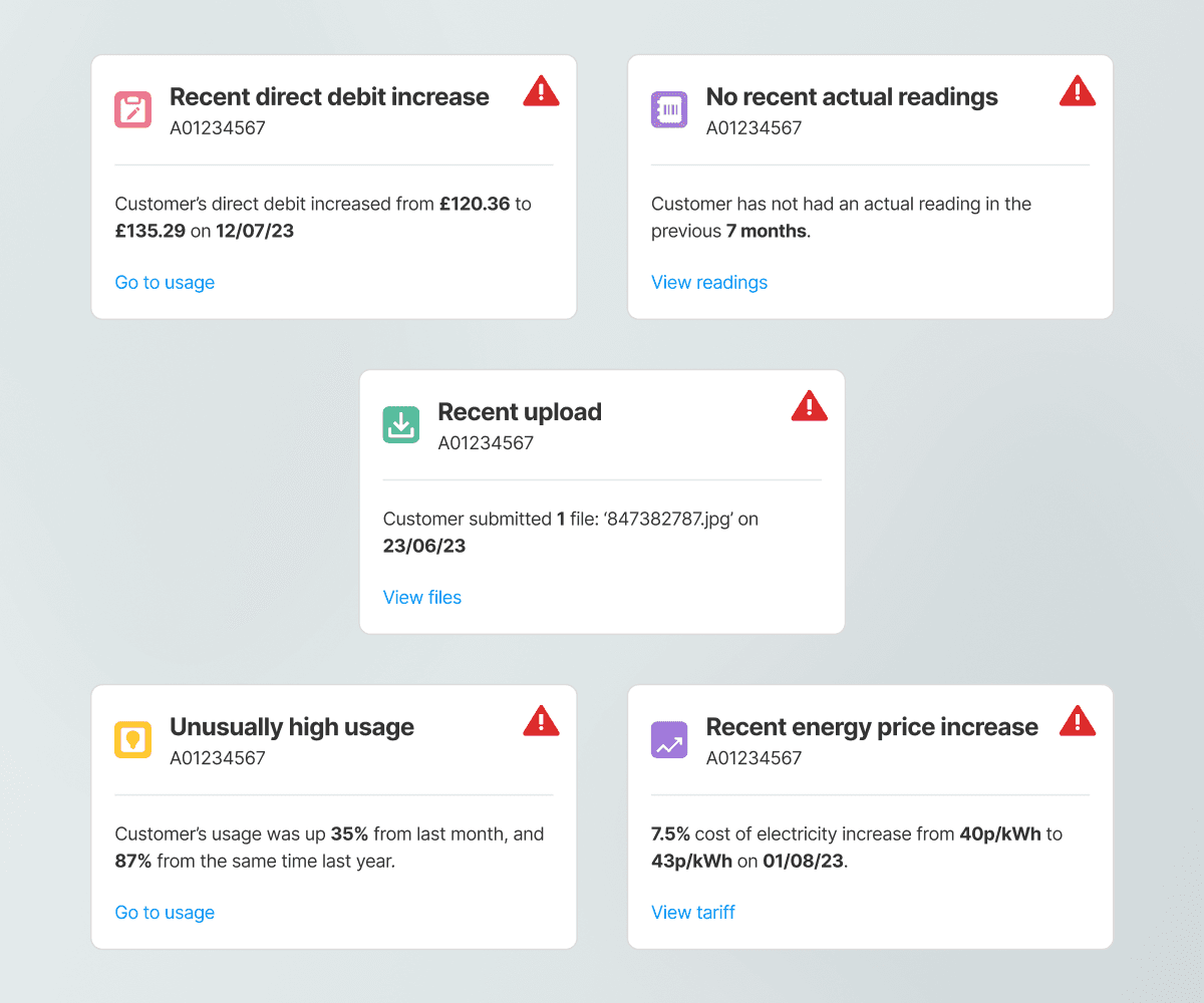 Surfacing actionable tasks when they were needed formed a crucial part of the billing and metering journeys. We wanted an effective way to distill all available situational data into the best possible follow-on, surfaced on two consistent reference points they could look at to streamline their next action: